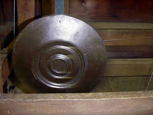 Attachment of the wire too the pendulum. Bevestiging van het draadje aan de slinger. Die Befestingung des Fadens am Pendel. La fxation du fil au pendule. Ruurlo Castle.